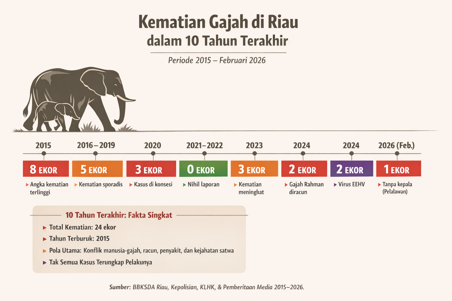 Rincian Kematian Gajah per Tahun (Data TNTN & Sekitarnya)
